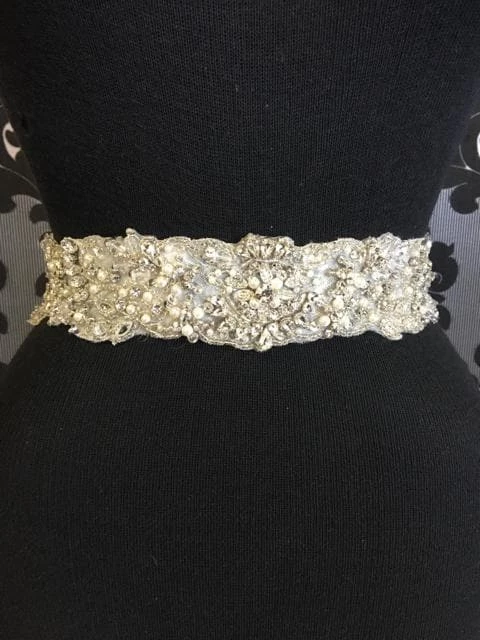 Allure Bridal 4810 Medallion Organza Ivory Ribbon Silver Rhinestone