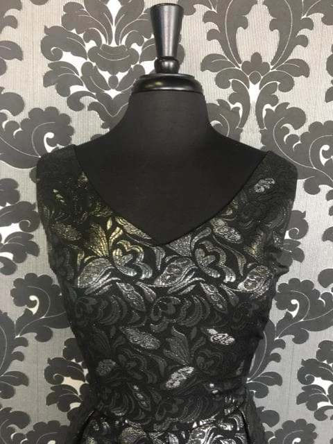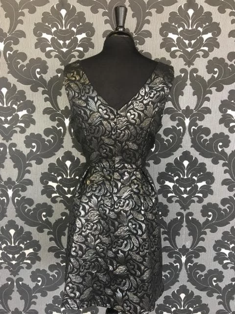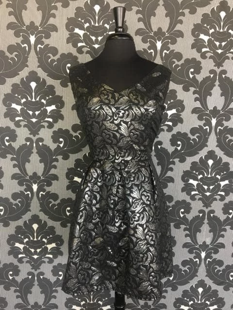 Size Large Silver/Black Damask Knee Sleeveless Dress