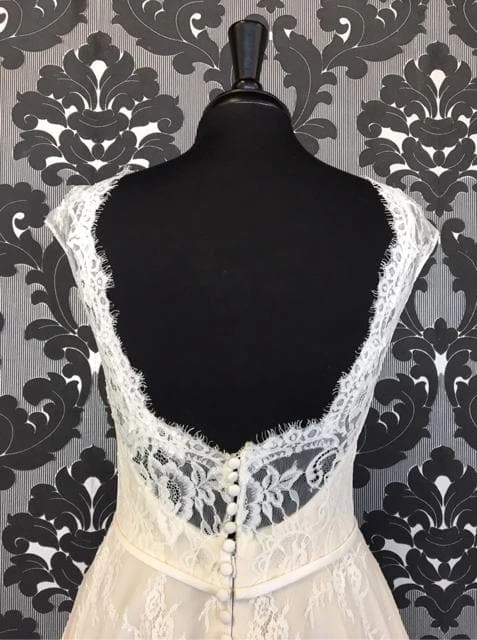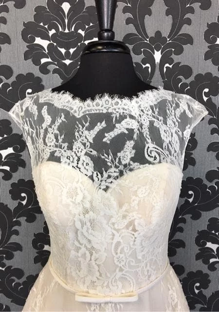 Size 10 Ivory Pronovias Lace Sleeveless Tea Length Highneck A-Line Olga