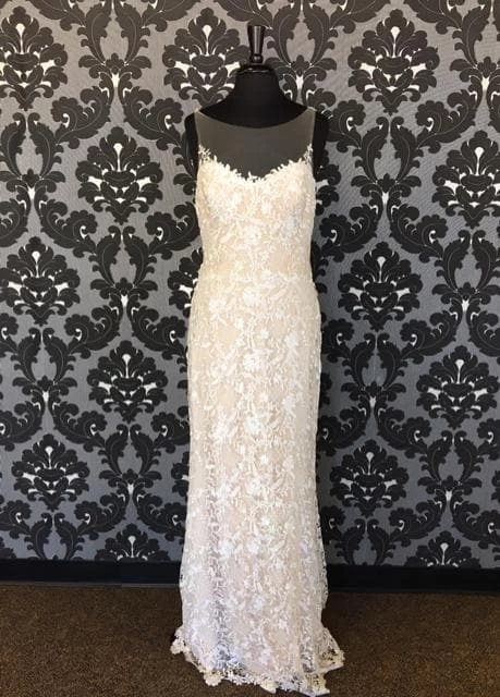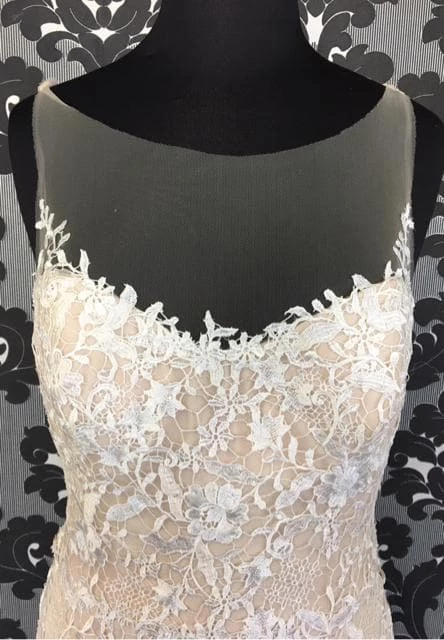 Size 12 Cafe/Ivory Willowby Lace Illusion Sheath Marseille 56136