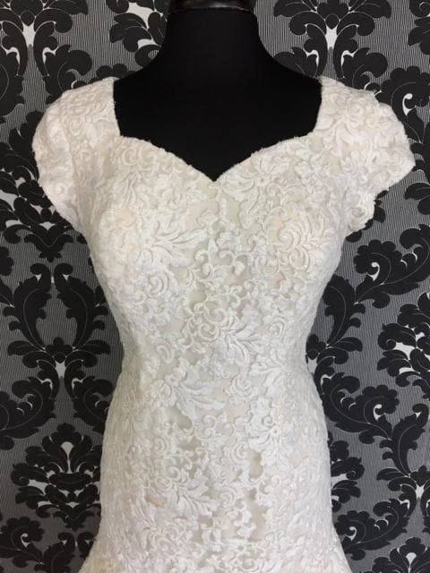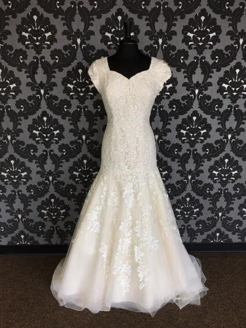 M531 Allover Lace Fit & Flare w/ Lace Cap Sleeves