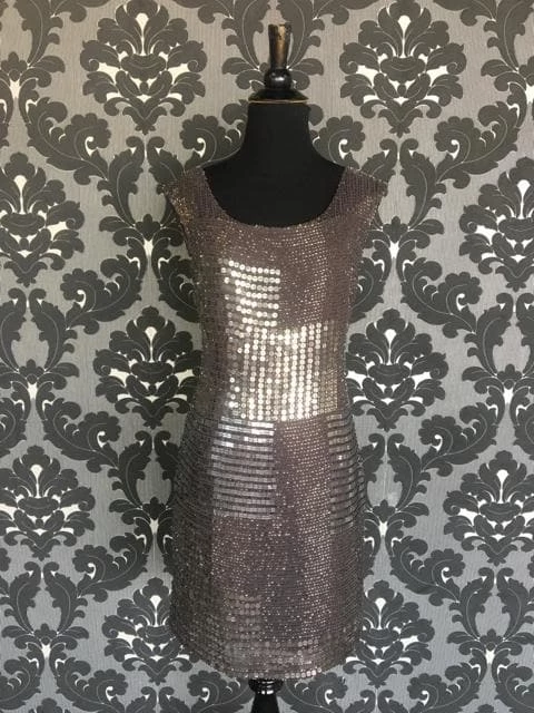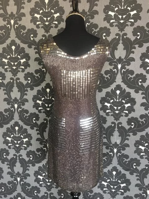 041875640 All over Beaded Brown and Silver Cocktail Dress