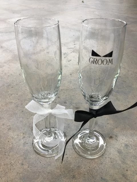 Bride & Groom Matching Champagne Flutes- 2 pc