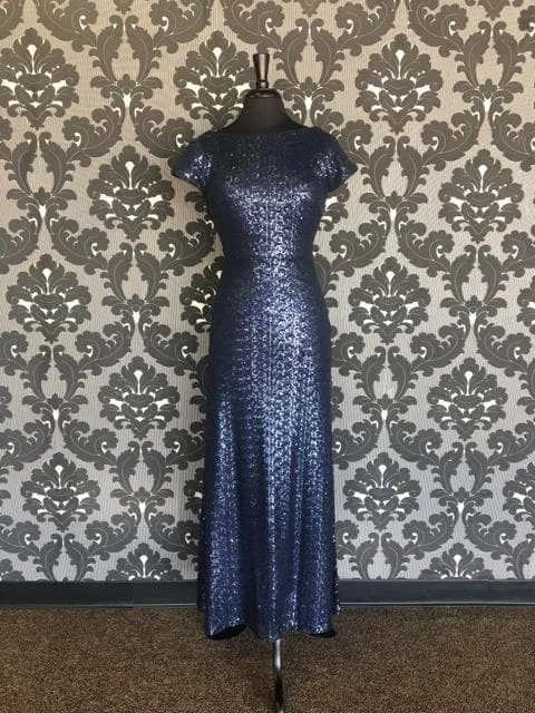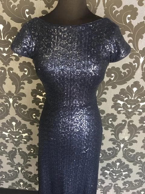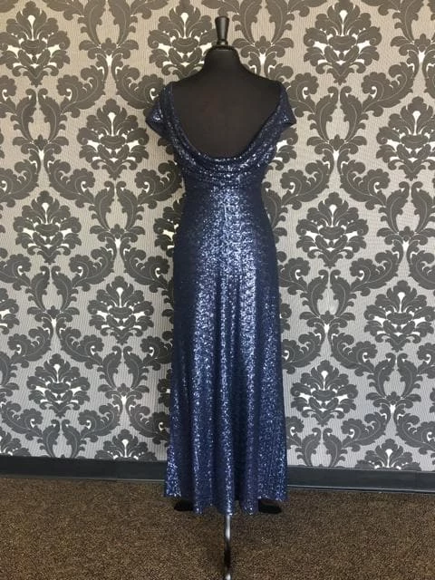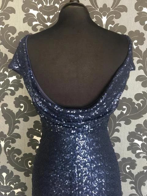 Navy Sequins Dress with Scooped Back