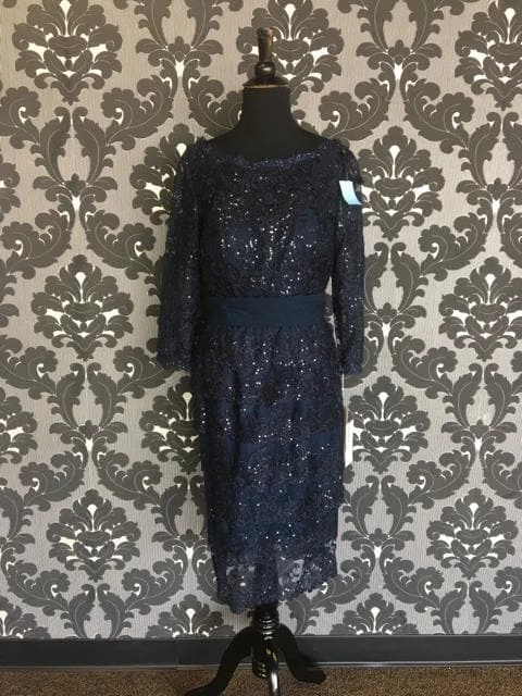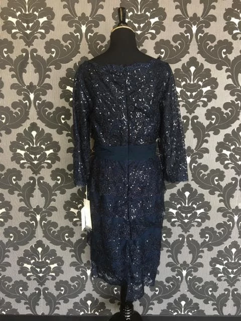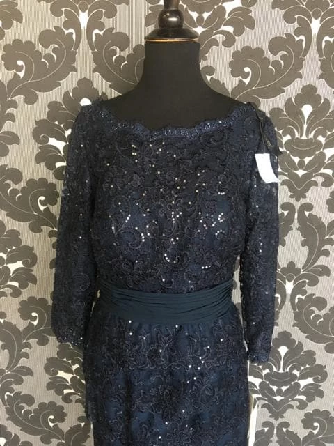 114824 All over lace 3/4 length sleeve rouched chiffon sash tiered lace skirt