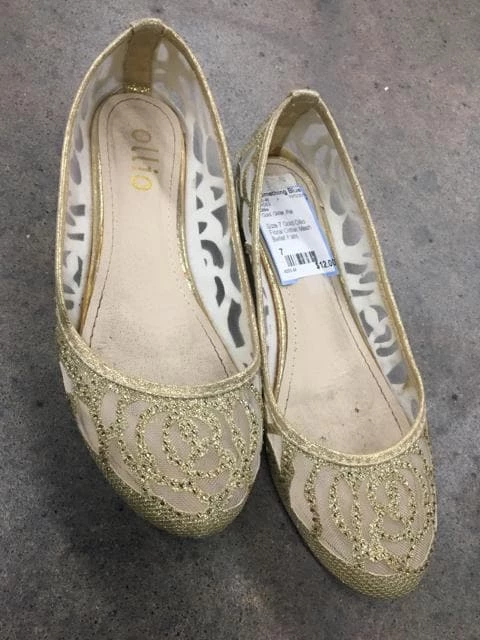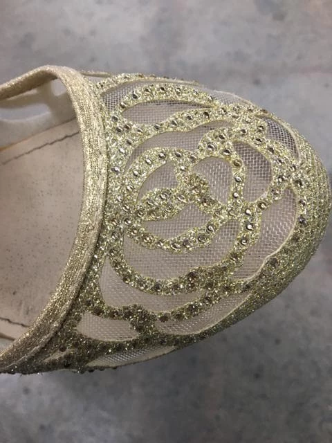 Size 7 Gold Ollio Floral Glitter Mesh Ballet Flats