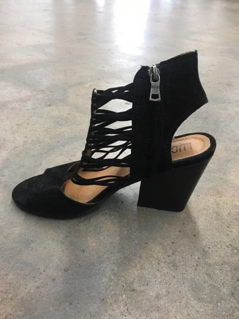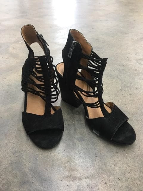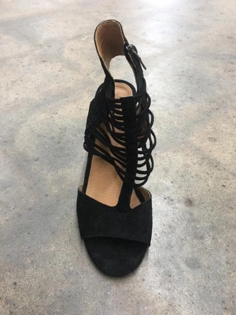 Black heeled sandal with zipper side