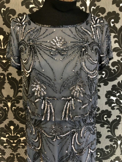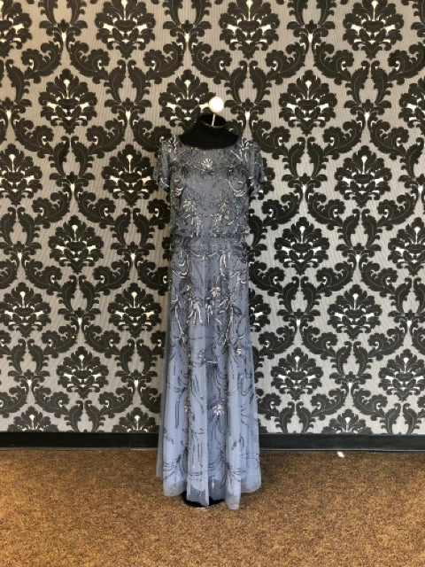 Adrianna Papell Formal Size 12 Beaded Navy Floor-length cap sleeve