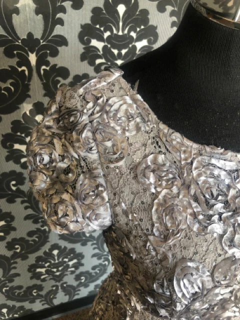 Alex Evenings Formal Rosette Grey Size 8 Cap Sleeve