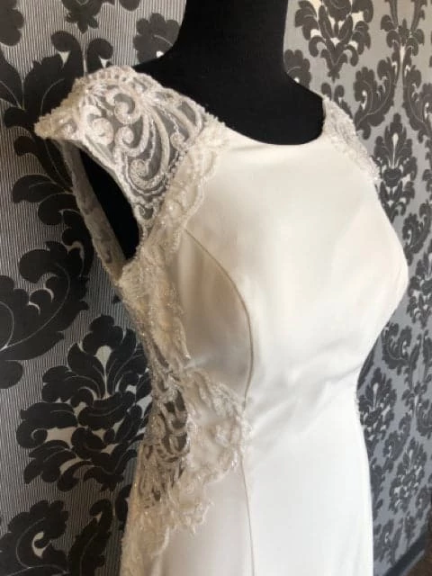 Allure Bridal Size 8 Beaded back and buttons down train Fit & Flare JULES AS IS FEW MARKS THROUGHOUT