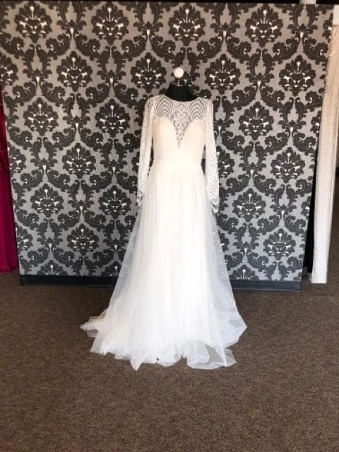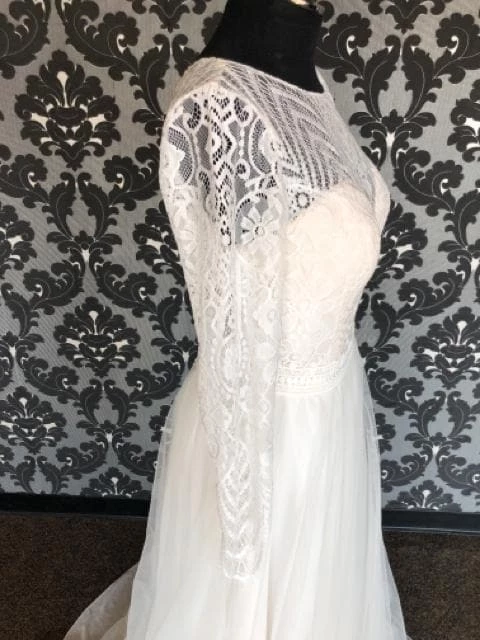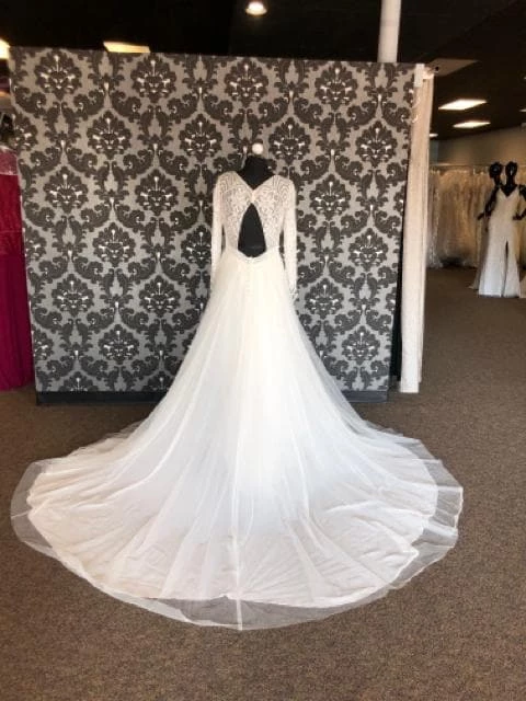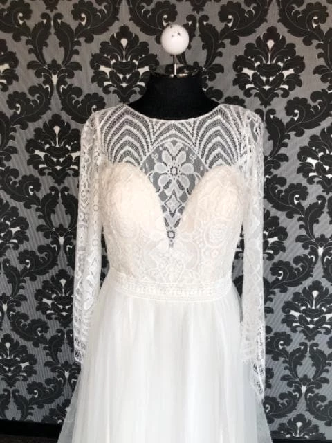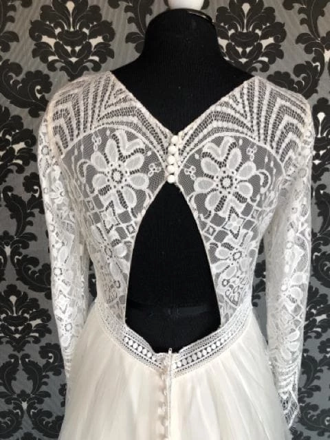 Long Sleeve Lace Bodice & Tulle Skirt w/ Keyhole Back