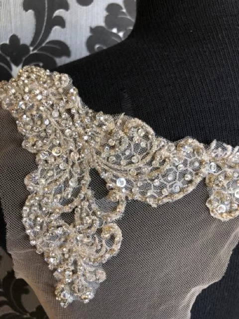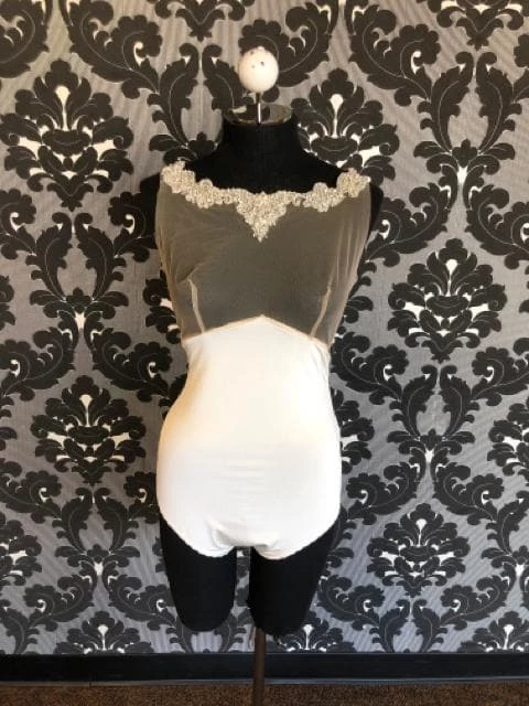 B11 Size 8 Nude Tulle with Silver Rhinestones Bodysuit
