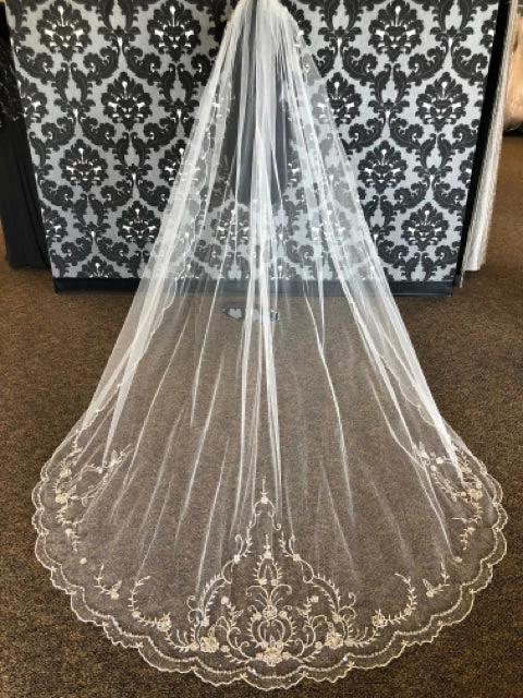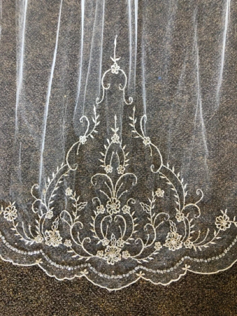 As Is holes in lace applique Cathedral Sliver Scalloped edge veil with Beading