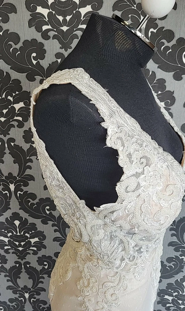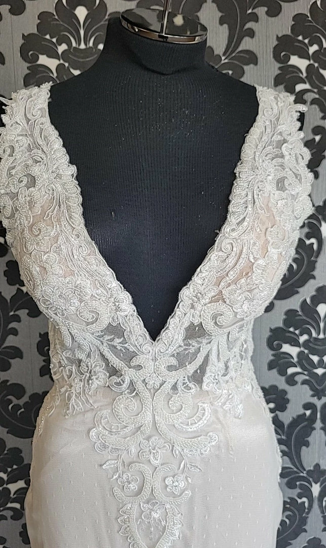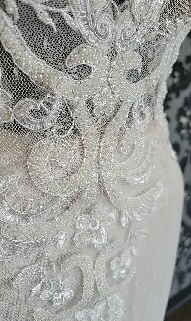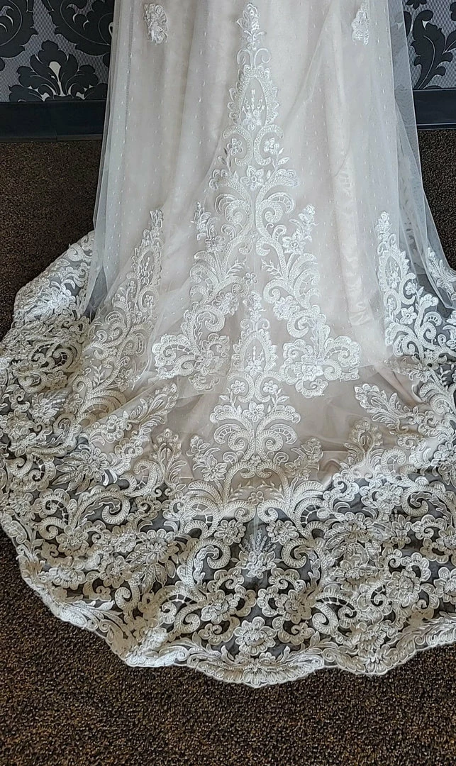 ZB203 Lace Applique Bodice with Spotted Lace skirt (As Is)