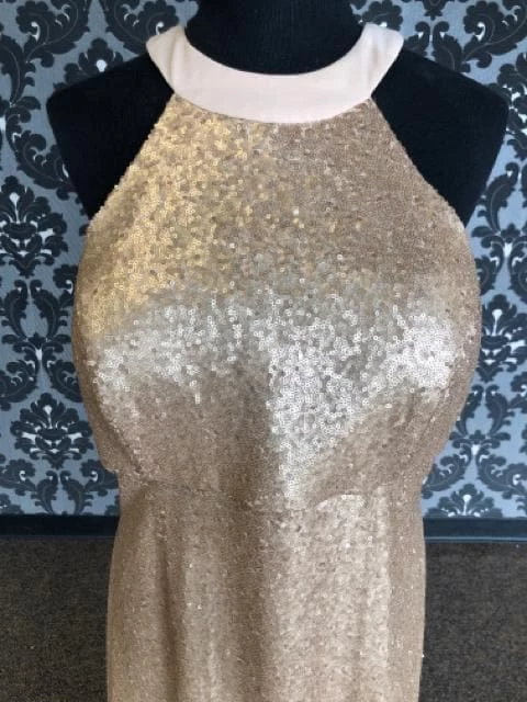 BariJay Formal Sequin Gold Size 16 High Neck Open Back