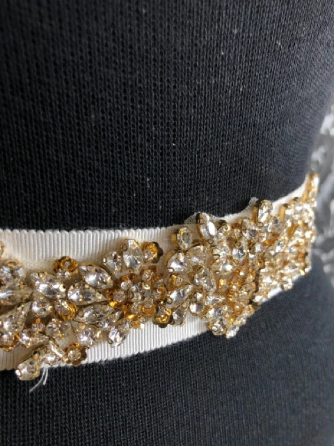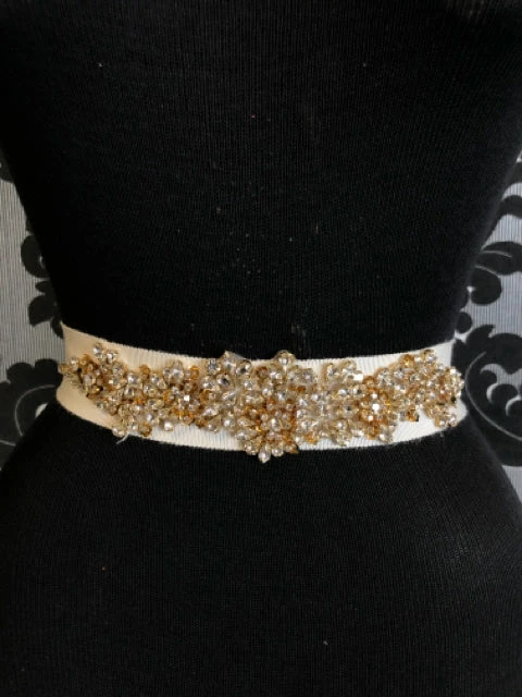 Ivory Ribbed Ribbon Gold Rhinestone Center