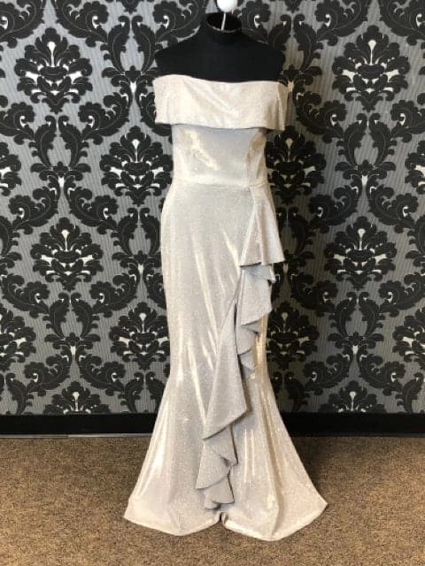 Betsy & Adam A24582 Formal Metallic Taupe Size 10 Floor-length