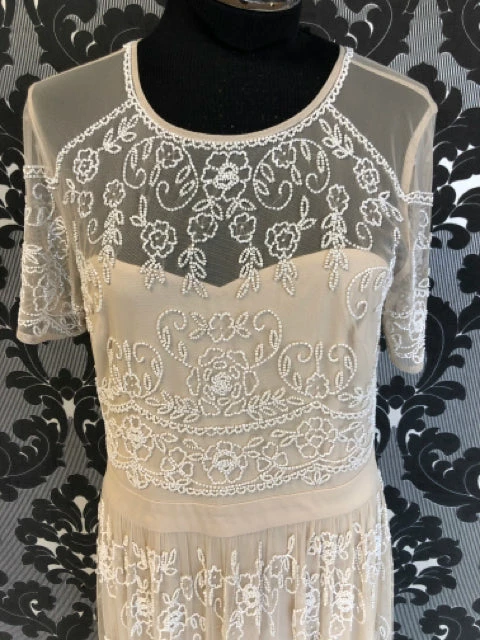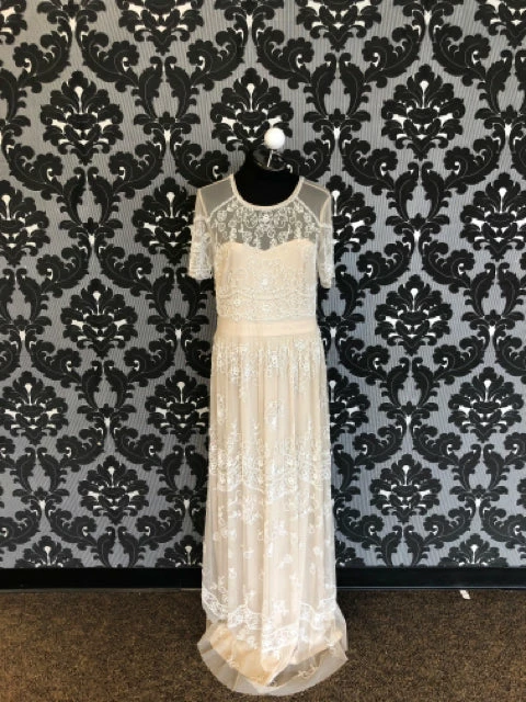 BHLDN Formal Size 14 Beaded almond/ivory Floor-length cap sleeve