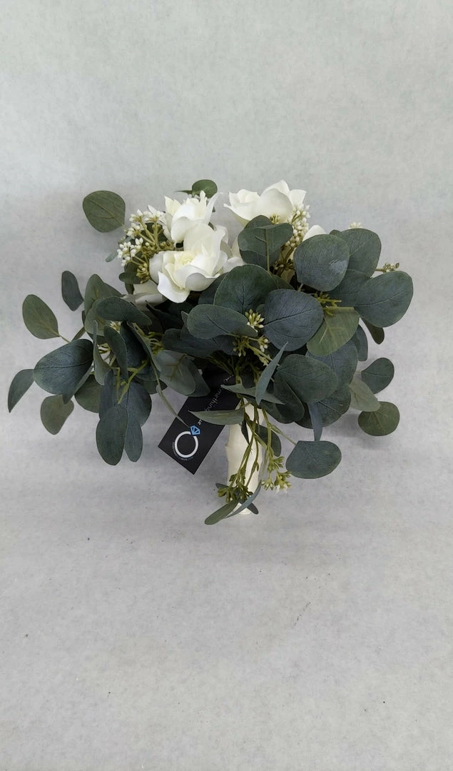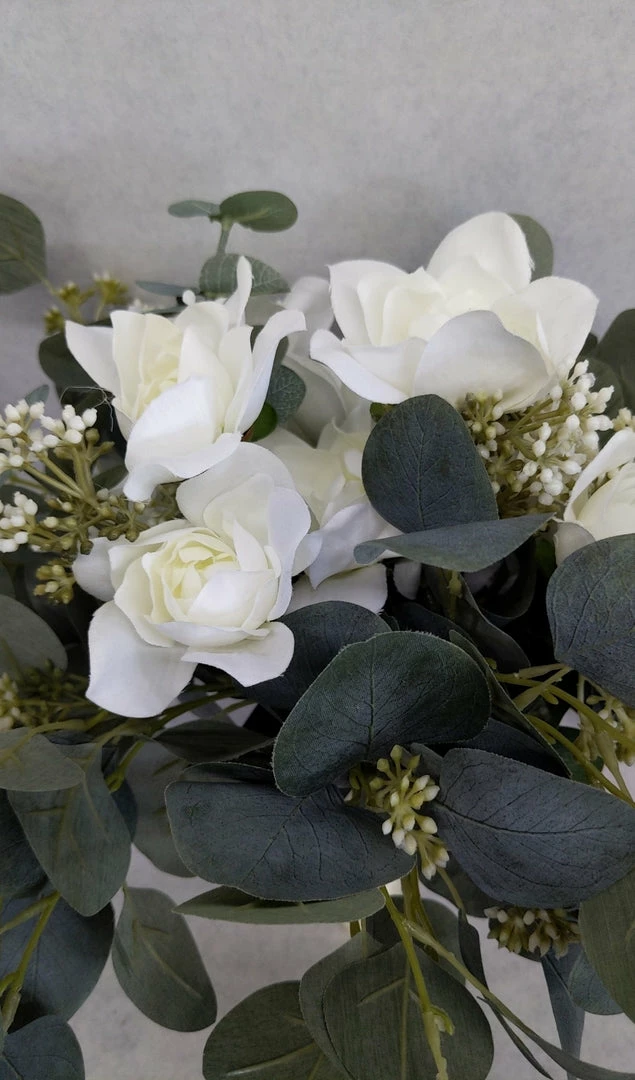 White Rose Bouquet with Silver Dollar Eucalyptus