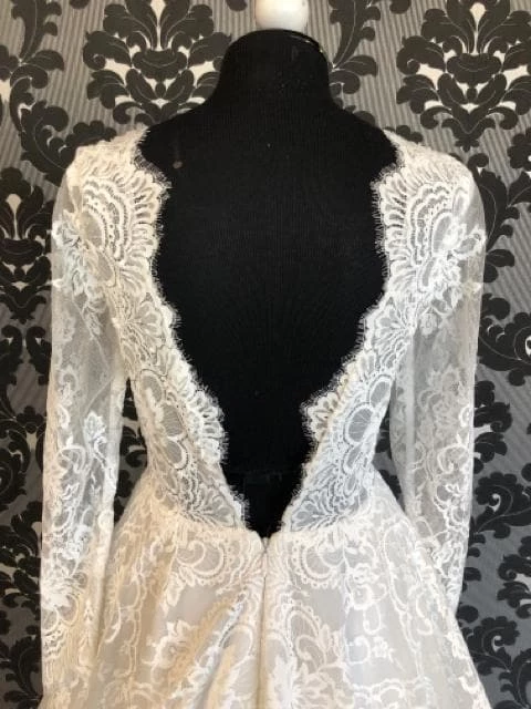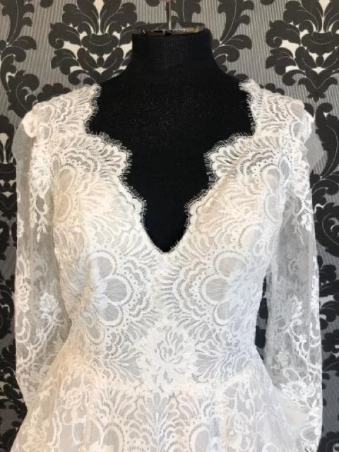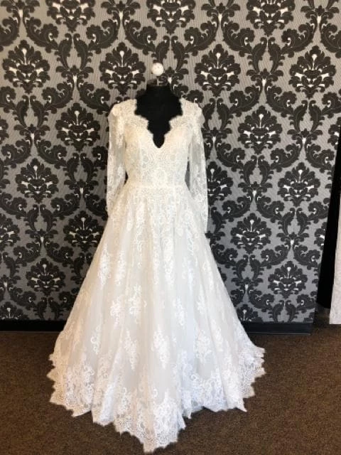 Chandler Size 14 Ivory V-Neck Long Sleeve Lace Ballgown with Pockets