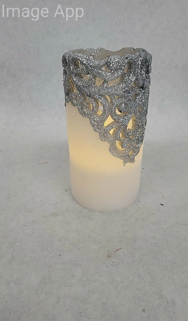 Ornate LED Wax & Glitter Pillar Candle Set (2-6″, 1-8″)