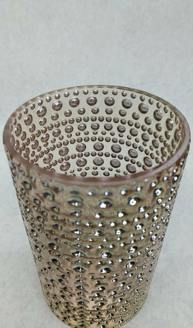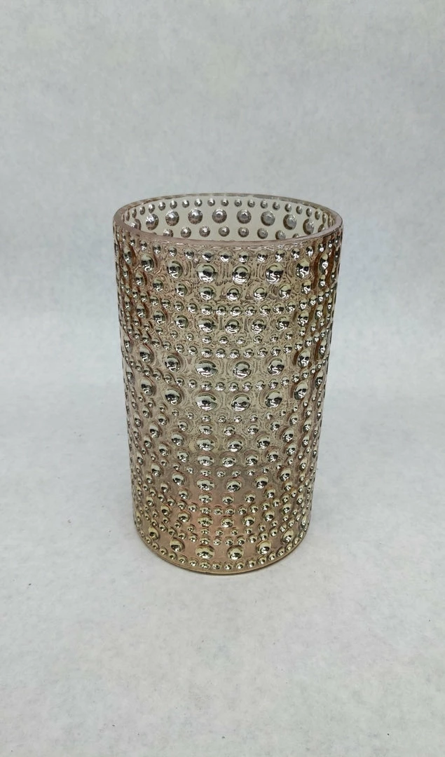 Cylinder Dotted Texture Gold & Blush Candle Holder