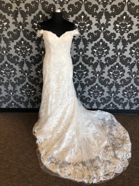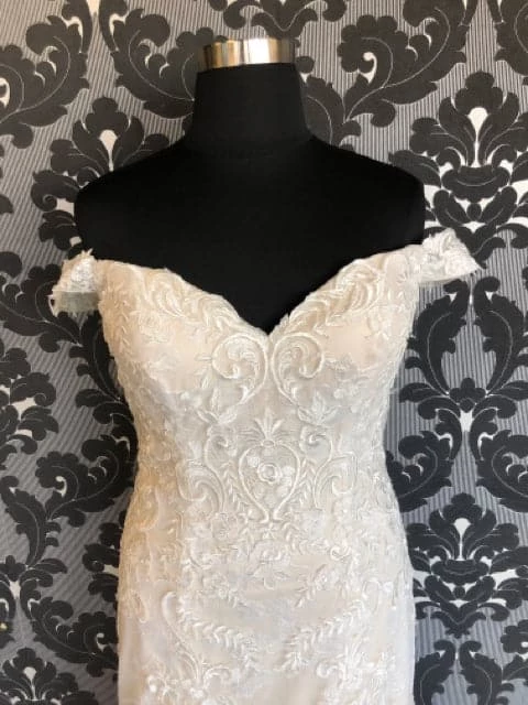 2411 Allover lace applique with Sequin applique Underlay & Off Shoulder Straps