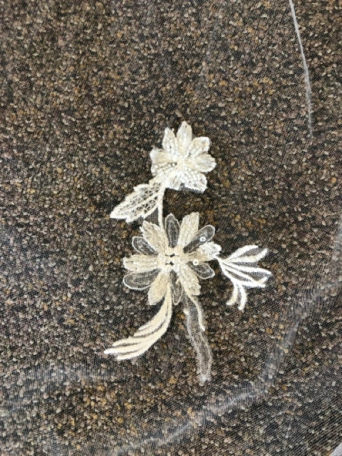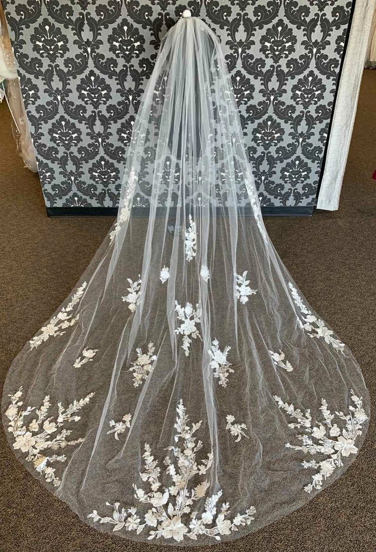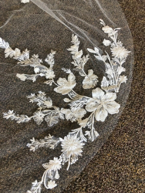 Cathedral Ivory Tulle with Lace and Sequins Veil AS IS A FEW LOOSE STRINGS AND SNAGS