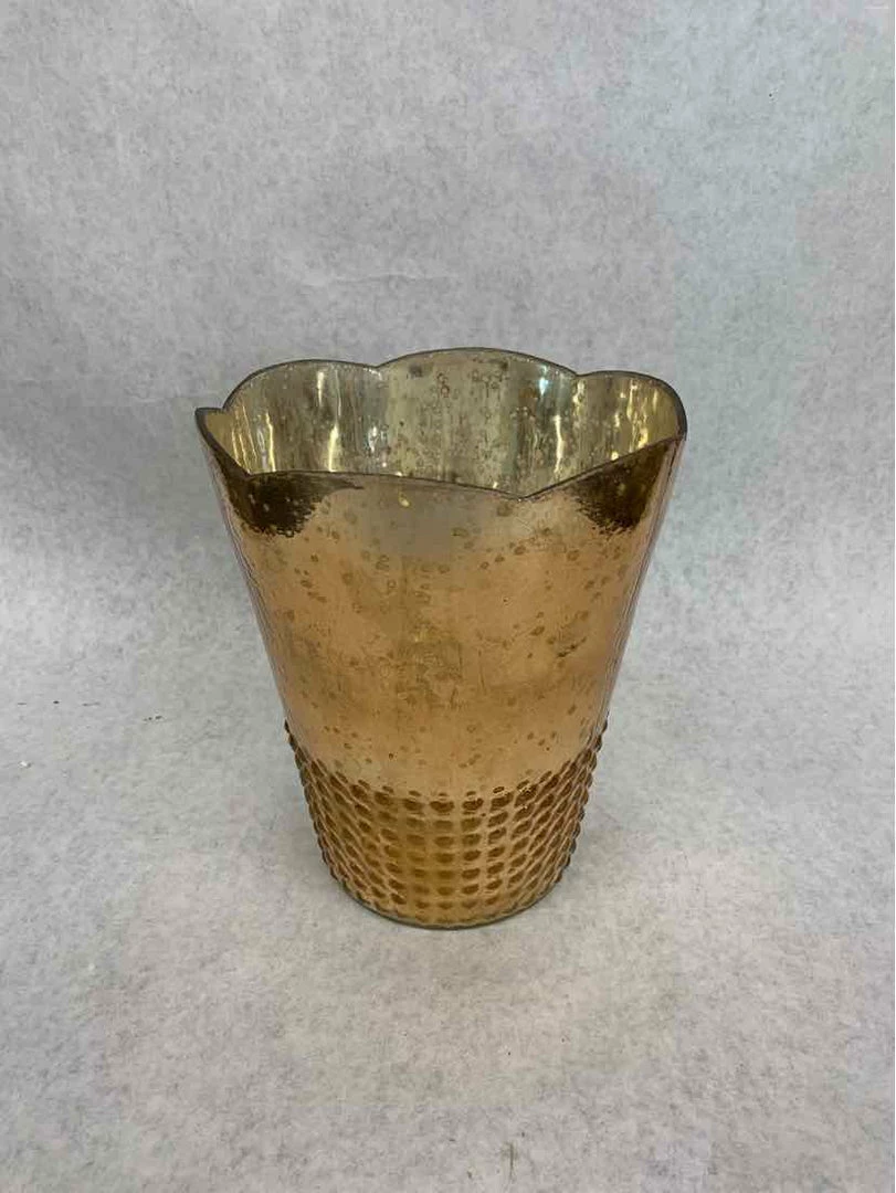 Scalloped Edge Rose Gold Mercury Glass Vase with Hobnail Design