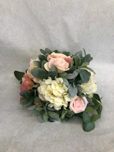 12″ Rose, hydrangeas, peonies, lamb ears, and greenery floral centerpiece