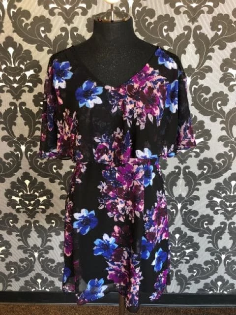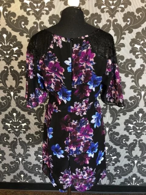 Floral Chiffon Dress w/ Lace Shoulders
