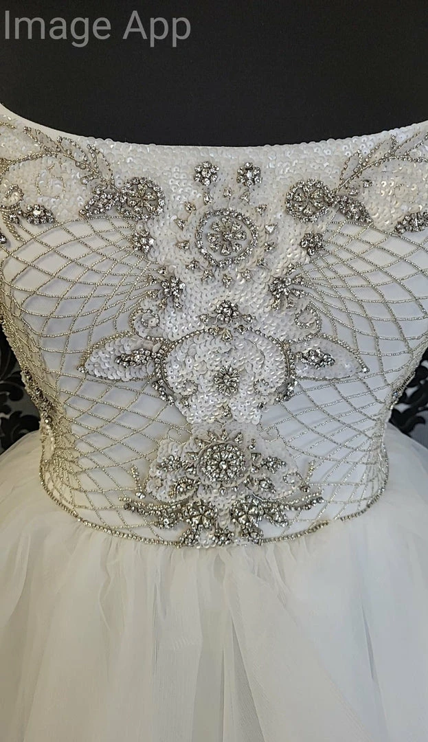 Cristiano Lucci Ivory 6524 Wedding Dress Horsehair Skrit Beaded Bodice