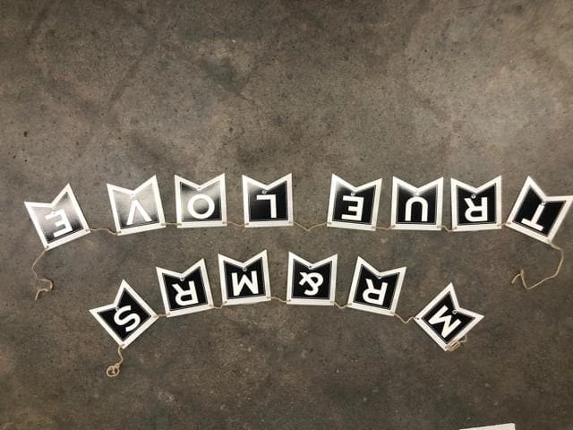 Hanging “Mr & Mrs True Love” Banner