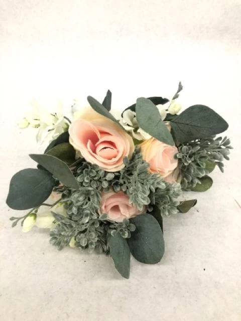 Blush & White Bouquet w/ Greenery & Ribbon Handle