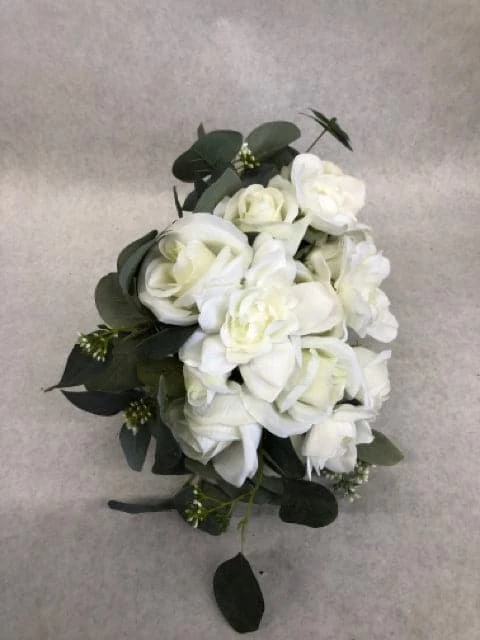 White Rose Bouquet with Silver Dollar Eucalyptus