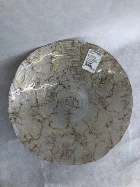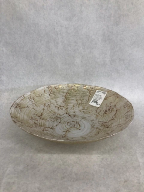 12.5″x3″ Gold and White Glitter Marble Glass Bowl with scalped edge