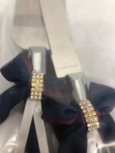 Navy/Burgundy/Ivory Cake Cutting Set 2pc