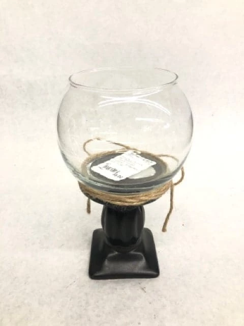 8″ Black Footed Fishbowl Centerpiece with Twine