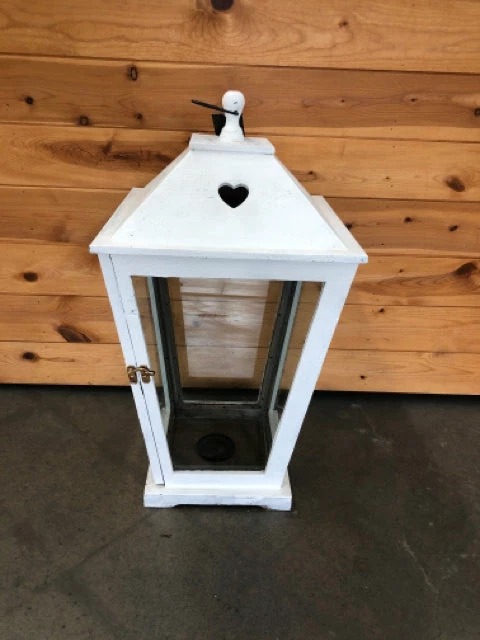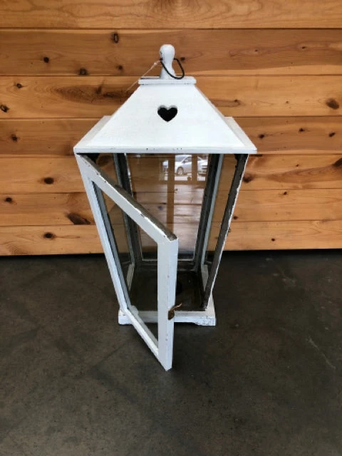 15.5″x29″ White wood lantern with heart details – PICK UP ONLY