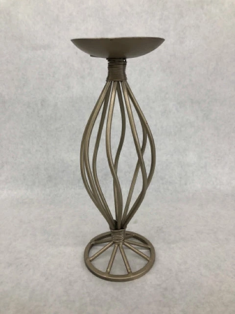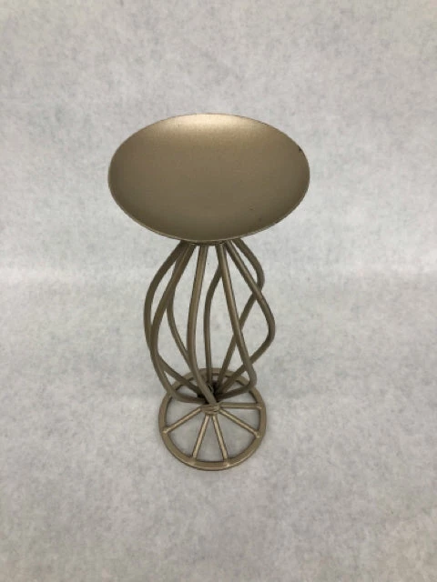 11″ Champagne Pillar candle holder with wagon wheel base design