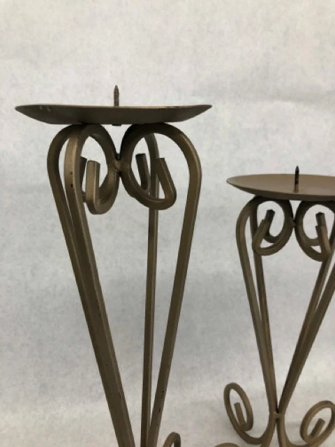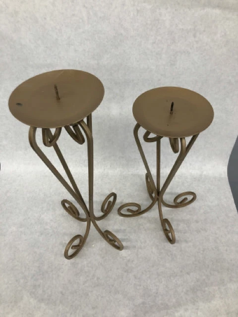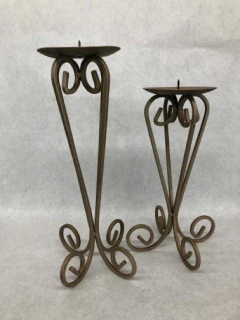 2pc Champagne metal pillar candle holders (12″ and 14.5″)