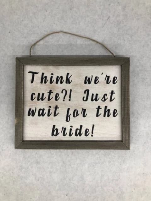 Wood Gray/White Hanging Sign “Think We’re Cute?! Just Wait For The Bride!”