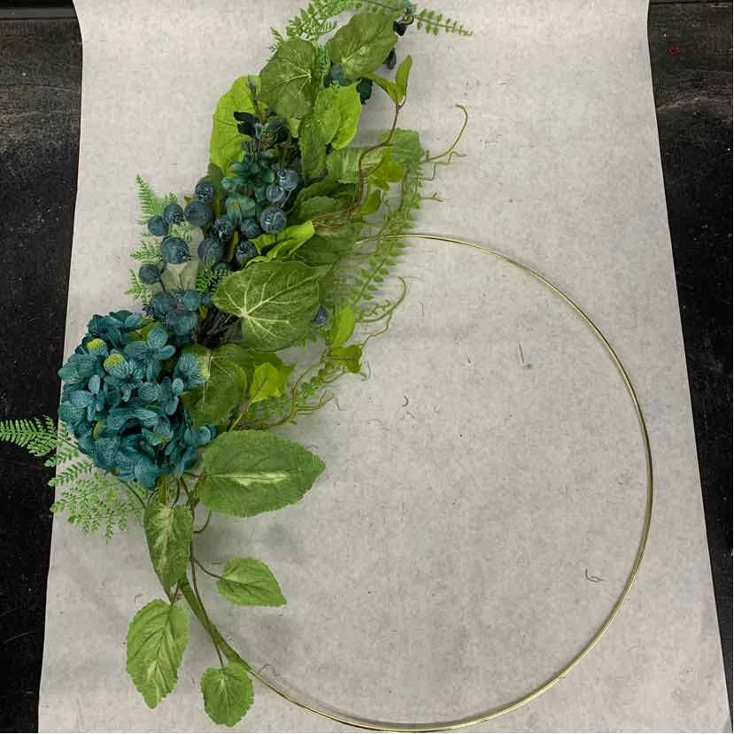 Gold Hoop w/ Blue Florals & Greenery