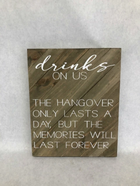 12″x15″ Wood sign “drinks on us then hangover only lasts a day, but the memories will last forever”