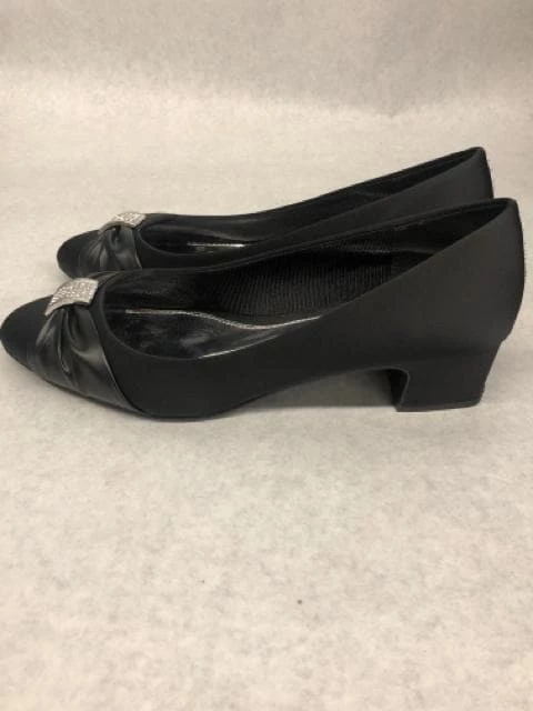 Black Satin Pumps w/ Rhinestone/Leather Accents