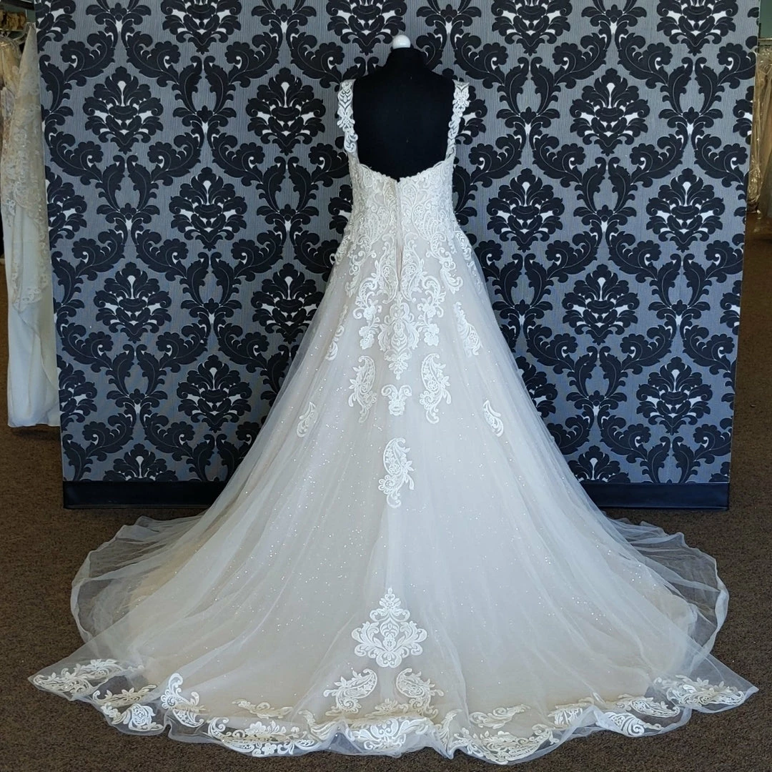 Essense sequin lace ivory strapless “EMILIA” “AS IS” (Staining throughout)