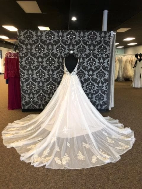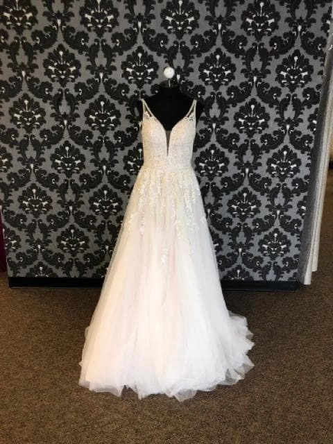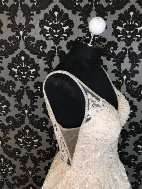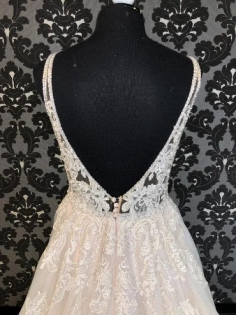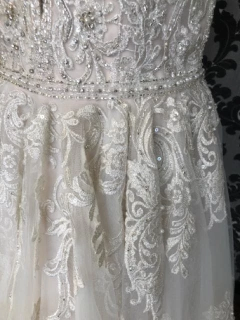 Fadeout Embroidered Beaded Lace A-Line (As Is, Missing rhinestones, hole in mesh by buttons)