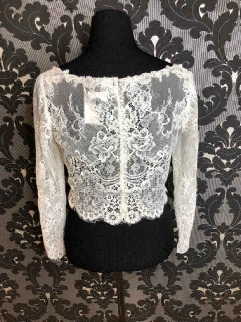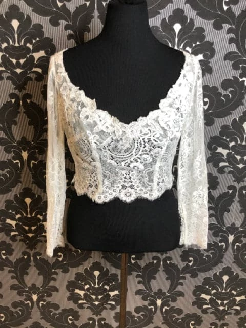 Elle Size 14 Ivory Lace Long Sleeve Jacket AS IS FEW LOOSE STRINGS