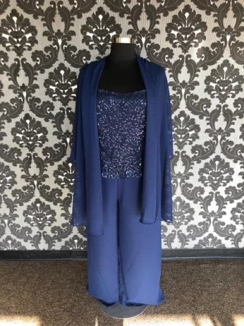 Eva Women’s Formal Chiffon/Sequin Navy 3pc Pant Set Size 5XL