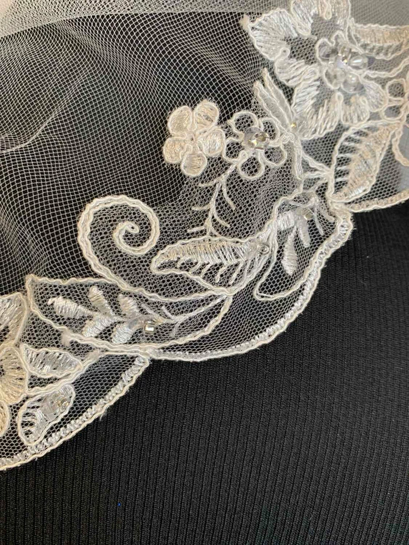 finger tip Ivory Tulle with Lace Beading Veil AS IS LOOSE BEADING
